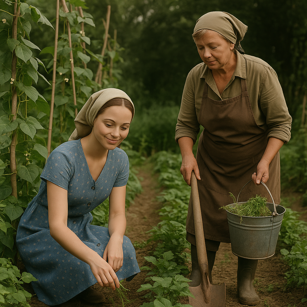 — Ага, — поддакнула бабка с кошёлкой. — Я ещё весной думала: то ли эта чернявая, что по огороду с ведрами бегала, то ли та, умная, с книжками. Обе при деле, обе ладные.