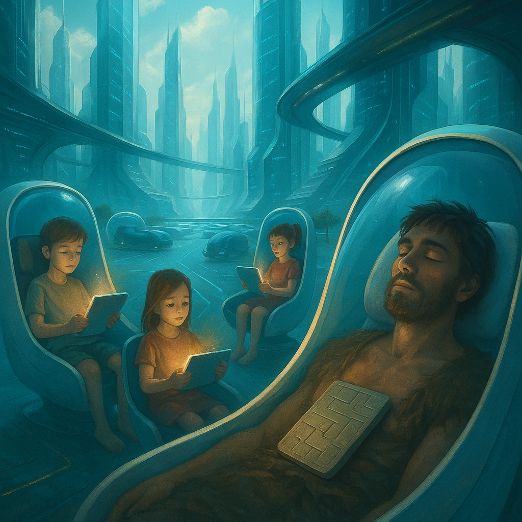 — Люди, гладкие и странные, сидели в прозрачных капсулах, их глаза были закрыты, но руки двигались, будто они ловили невидимых тушканчиков.