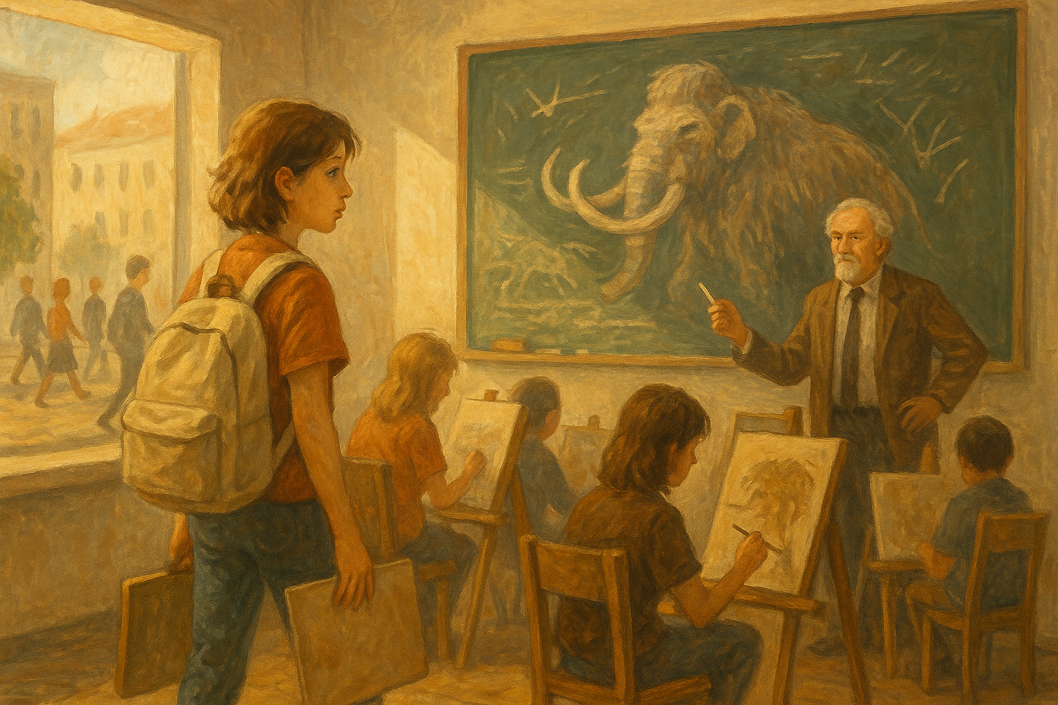 В классе пахло красками и бумагой. Учительница, всегда строгая, сегодня показалась похожей на старейшину из моего сна — только вместо косточек в руках у неё был мел.