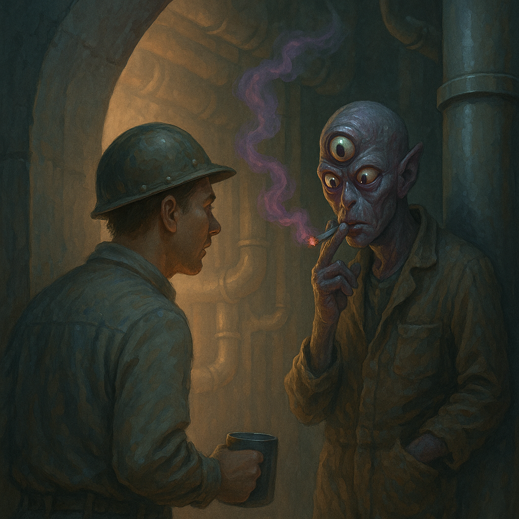 — Вот тут, — наставник ткнул в трубу, из которой капала мутная жидкость, — мы сливаем тоску человеческую. Только аккуратно, землянин. Если дашь слишком густую, реактор может вырубить.