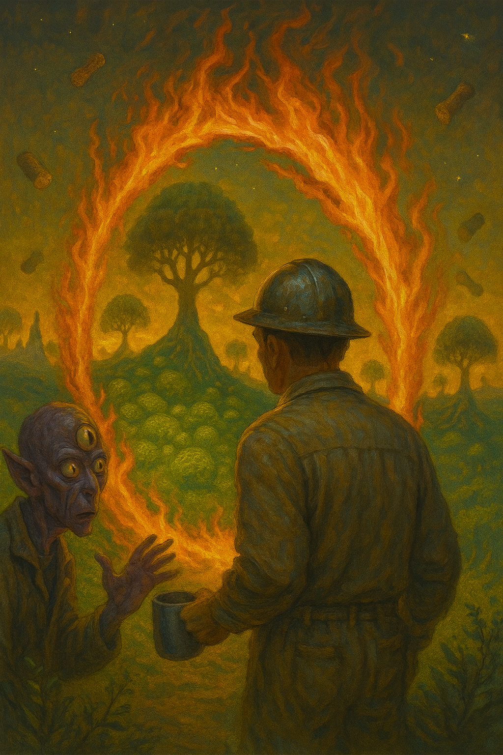 — Работает, — радостно сообщил трёхглазый. — Всё, ты теперь наш, родной, пока не протрезвеешь — планета не отпустит, у нас тут честно: кто влился, тот и гражданин, без бюрократии, только немного аллегорий.