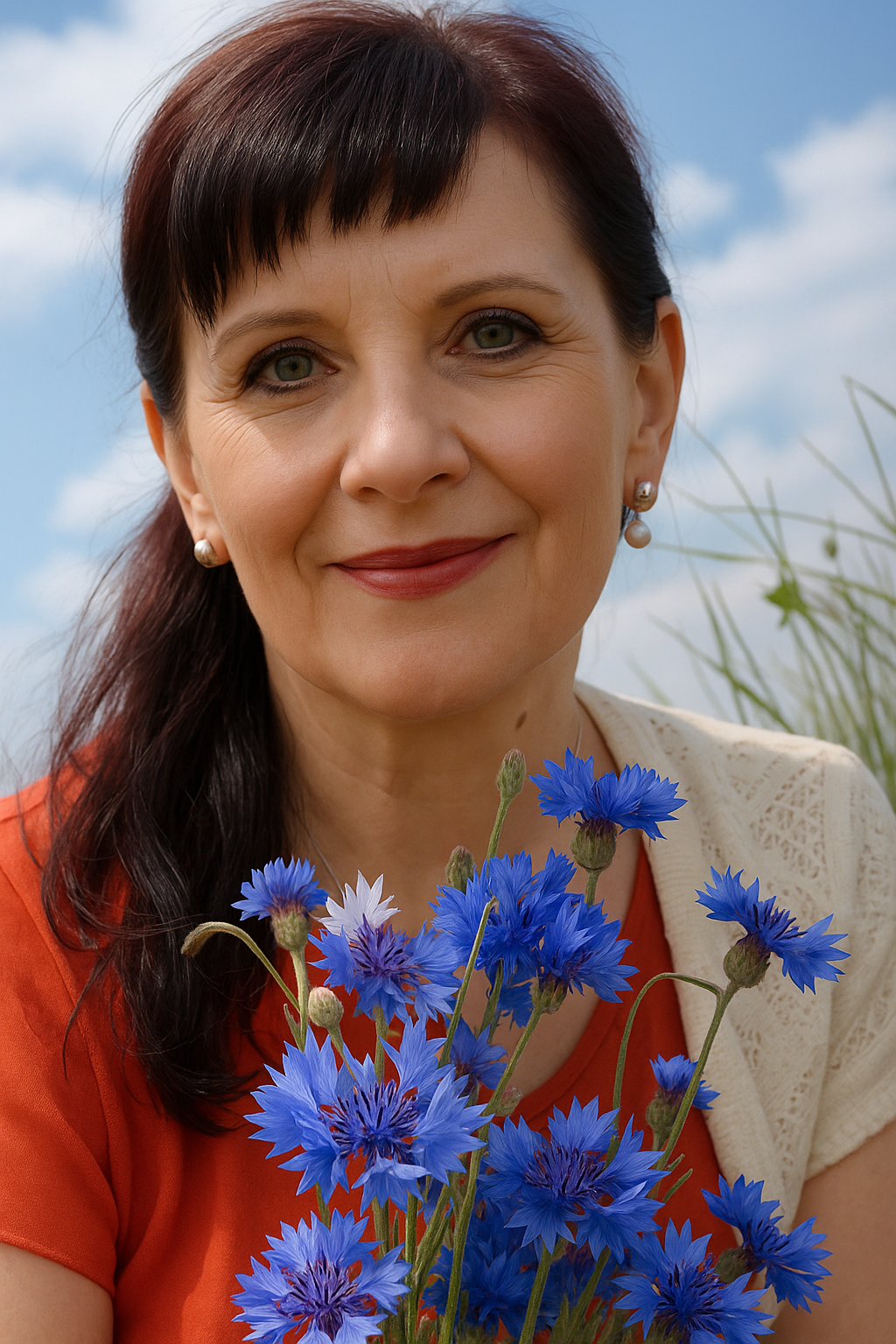 Розметався зелений килим молодої трави беріг, а над ним рожевими пухнастими хмаринками перекинулося небо, вдивляючись у прозору воду, мов у дзеркало, і милуючись власною вродою. У шовковій травичці загубилася вузенька стежка, кучеряві дуби поважно тягнули свої віти в небесну височінь, а стрункі й горді сосни дивилися десь у далечінь, немов сторожа спокою. Густі верби схилялися над річкою, зазирали у воду, купаючи свої довгі коси.